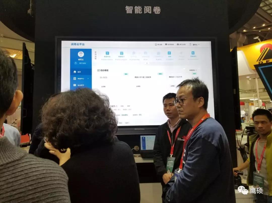 以本次展会为契机,鹰硕充分展现了数据驾驶舱和智能阅卷系统两大板块产品。“数据驾驶舱” 核心是由教育局/校长/教师/学生四大驾驶舱组成,整个数据系统全面覆盖了“测、评、学、教、管、研”各个教学环节,涵盖了教育局、校长、老师、学生等多个教育主体的多维度数据统计及分析,尤其是利用大数据分析提供多维度报表,为管理者提供更科学的决策支持的功能亮点,广受观众嘉宾好评。