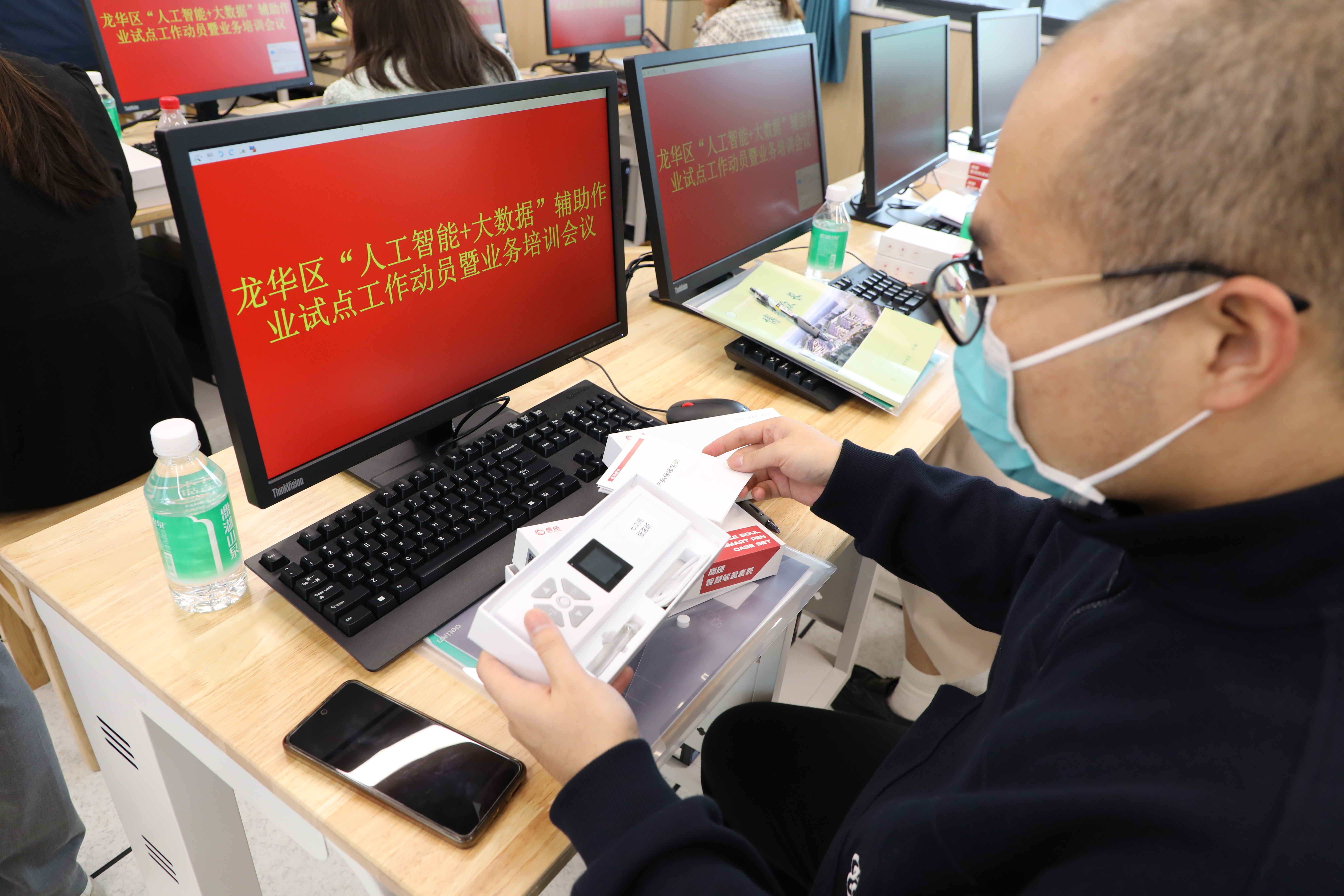 随后,来自以上三所学校的教学主任及任课老师共三十人投入到AI辅助作业系统的业务培训中。本次培训的主要内容有两个方面,一是如何熟练使用AI辅助作业系统,二是如何将该系统深度融入各学科的教学场景。为提升培训效果,现场给每位老师配备了AI辅助作业系统的软件平台账号、智能硬件终端(智能笔盒、智能教辅、智能答题本)、系统培训手册,通过现场两个半小时讲解与实操相结合的方式,让老师们全面学习并掌握了AI辅助作业系统教师端、学生家长端、习题卷库中心等各功能模块的使用操作规则,深度学习了各学科教学的典型应用方法。